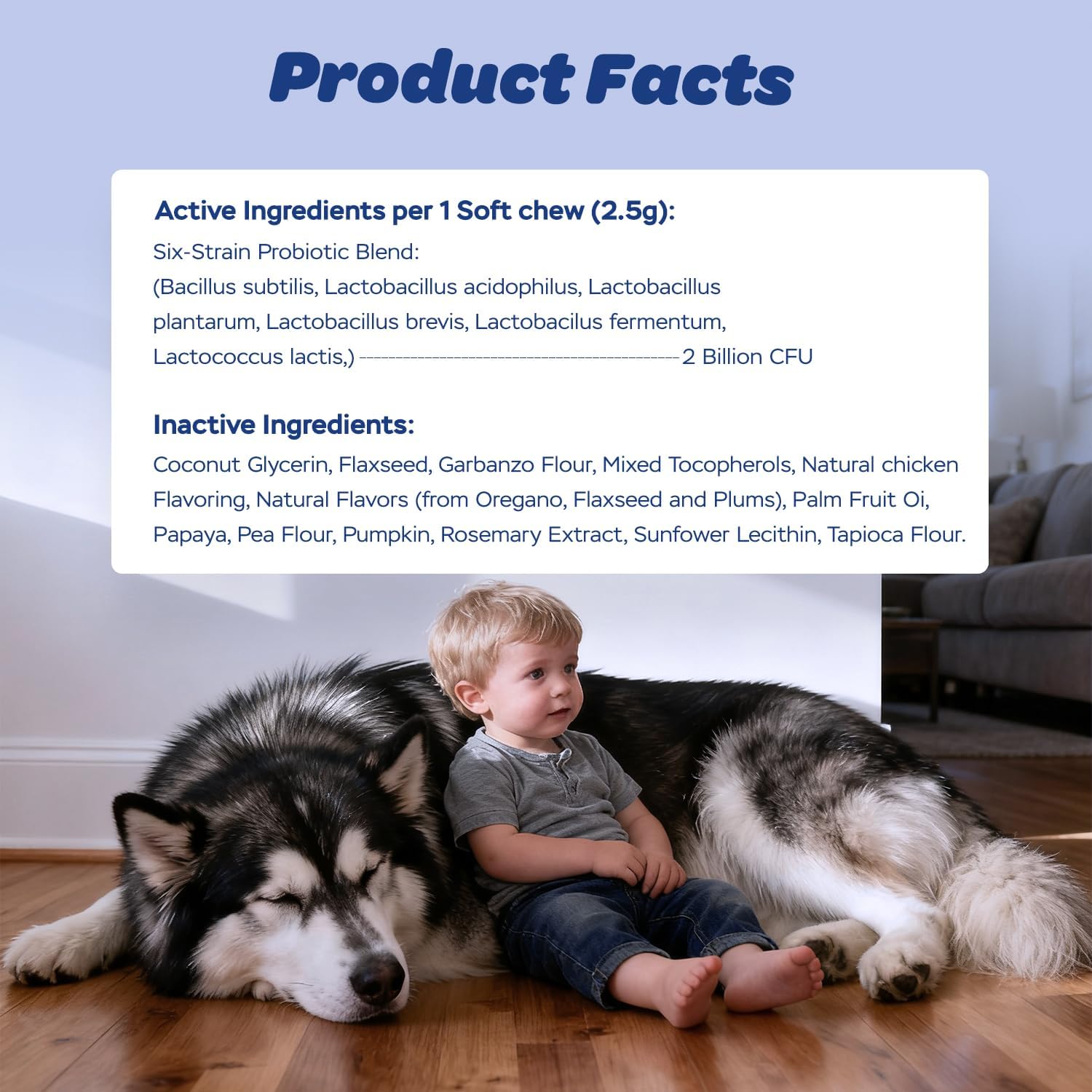 I give my dog two of these probiotic chews to ensure a healthy digestive system without her dealing with upset stomach issues. They are packed with proteins & other healthy ingredients that improve your dog’s digestive issues. They are double packaged to keep them from being contaminated. Abby loves the taste & thinks it is another treat for her. Great supplement to keep Abby healthy & build & maintain her muscle strength.
